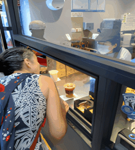 Le dernier point de vigilance nous ramène à Luckin Coffee. Ne pas prioriser la relation avec l’agent au contact a priori, soit – mais il ne convient pas pour autant d’empêcher la relation lorsqu’elle devient opportune. La photo ci-dessous nous ramène presque aux hygiaphones administratifs, largement critiqués pour leur manque d’ergonomie communicationnelle. Chez Luckin, clairement, les vitres ouvertes à hauteur de mains étaient adaptées à la délivrance des cafés, mais pas à la communication verbale. L’aménagement du lieu de service était tellement pensé contre la relation que l’employée au contact a dû surmonter des obstacles physiques (en l’occurrence elle a fini par sortir de la boutique) pour aider le client. Ne pas prioriser la relation ne doit pas être confondu avec le fait d’aller à l’encontre de celle-ci !
